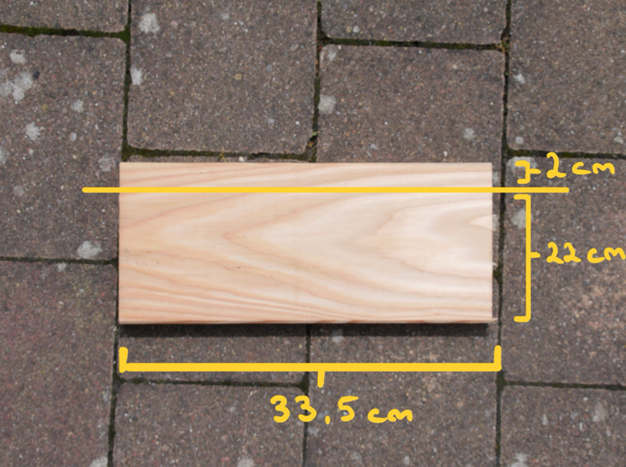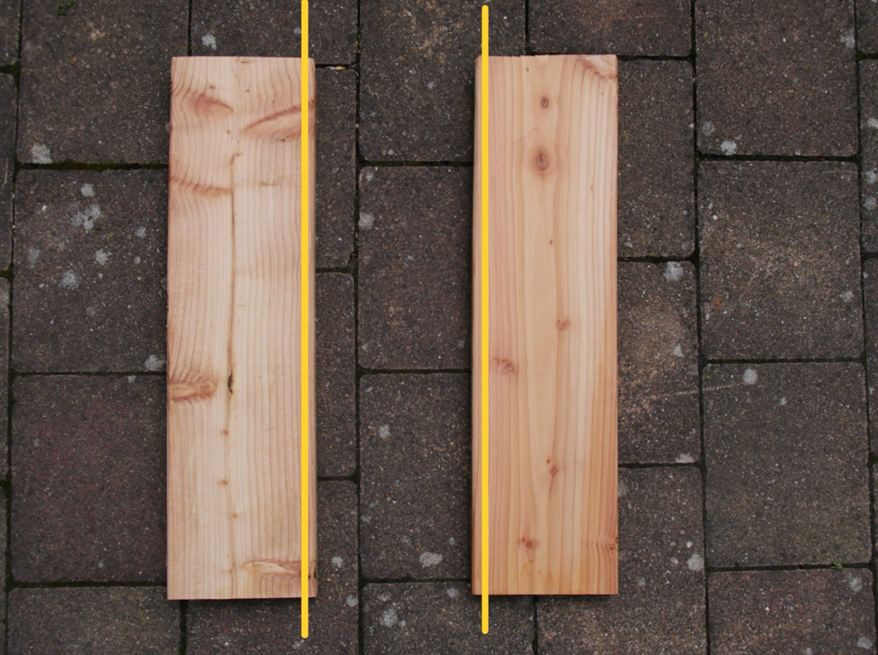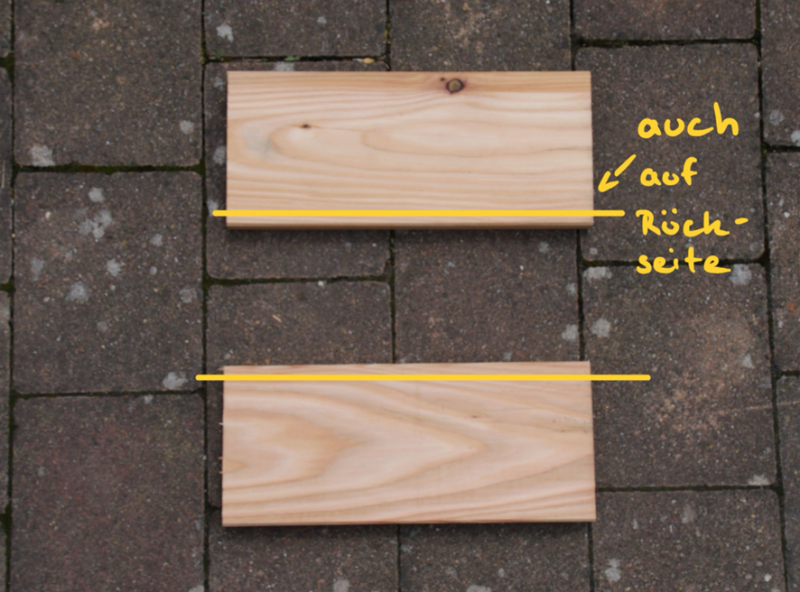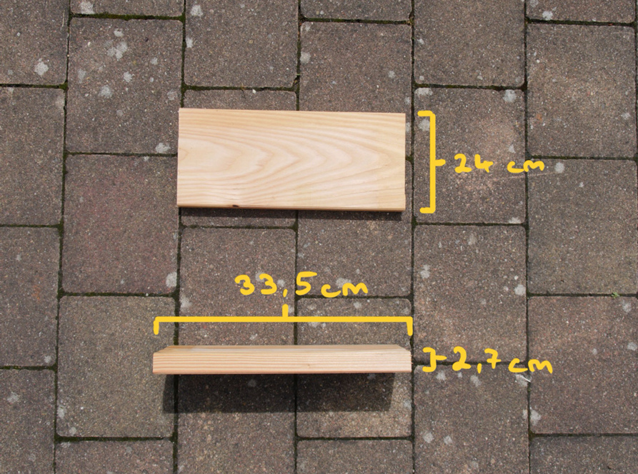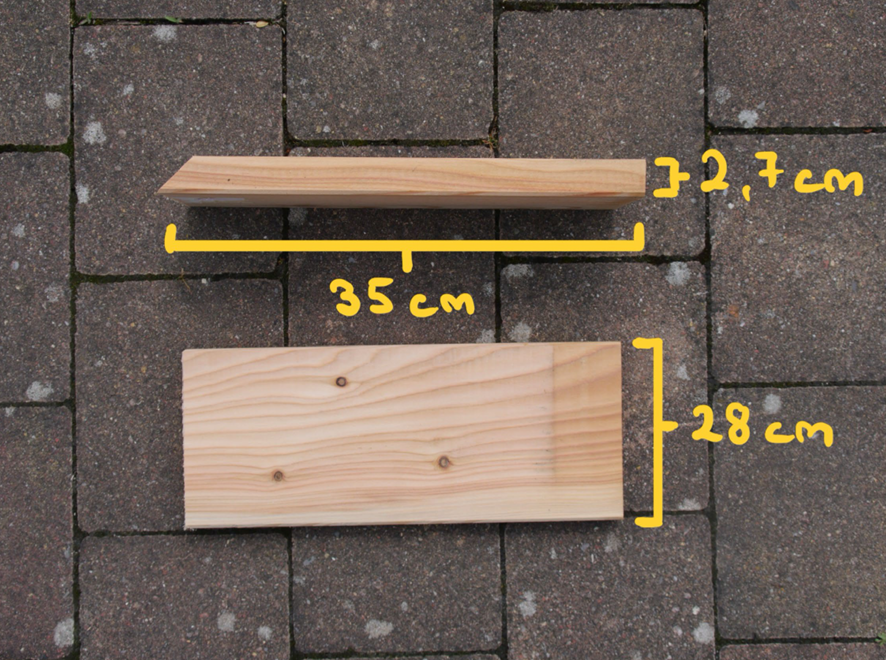 Zwei Bretter der Länge 35 cm (Nut muss auf der kürzeren Seite liegen)