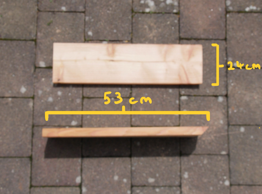 Zwei Bretter der Länge 53 cm (Nut muss auf der längeren Seite liegen)