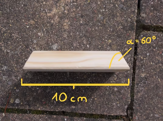 Man bringt die Standkreissäge in einen Neigungswinkel von 30 Gradund sägt das Brett an der Stirnseite direkt an der Kante ab. Anschließend wird einAnschlag 10 cm entfernt vom Sägeblatt angebracht. Man kürzt das Brett nach und nach und dreht es immer, sodass eine trapezförmige Grundfläche entsteht. Pro Nisthilfe bracht man 3 solcher Trapeze.