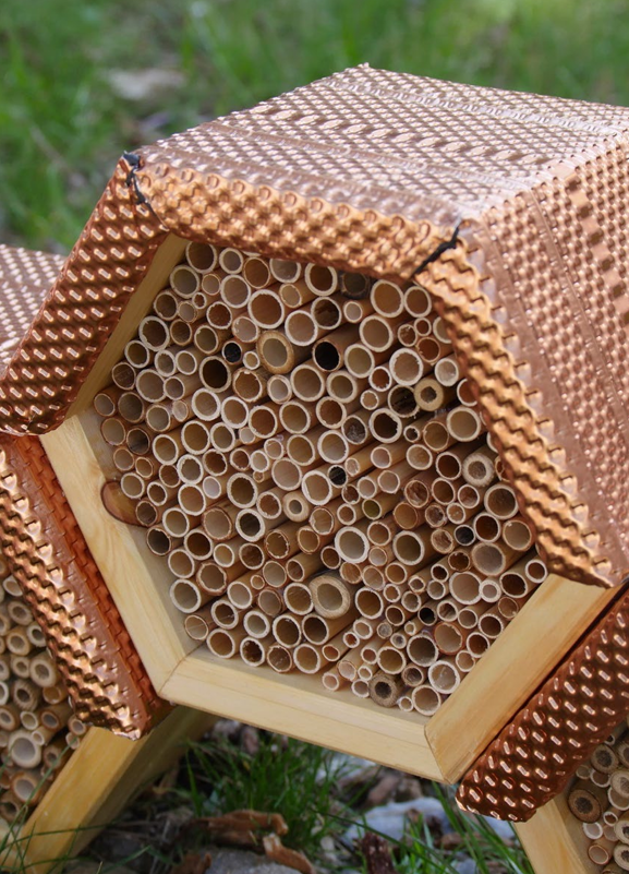 Einen besonderen Reiz haben die Nisthilfen als kleine Gruppe, da sich dann die Hexagonezu einer Art Wabenstruktur zusammenfügen