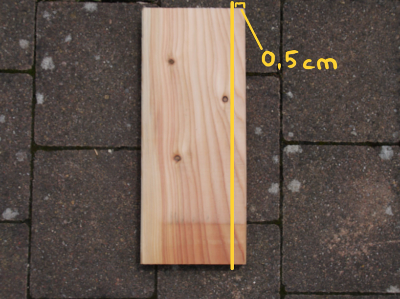 • 1 Brett einer wenig harzenden Baumart (18mm; 120mm; 500mm (je Nisthilfe)